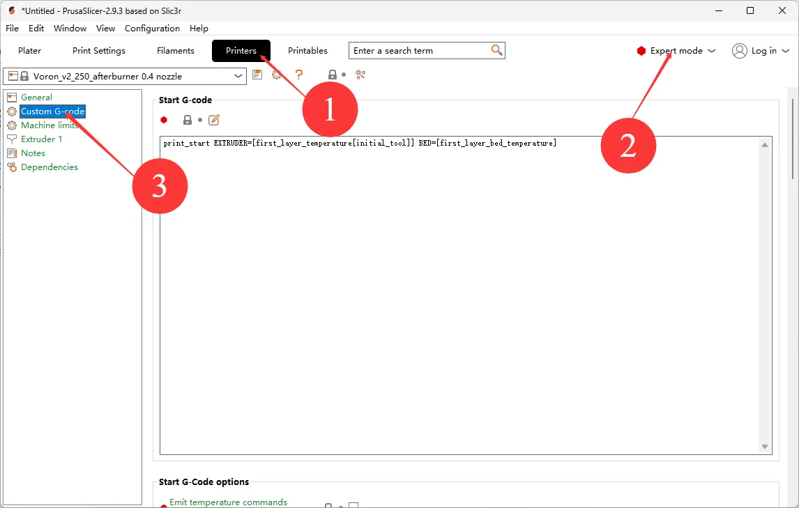 Machine G-code,出现Machine start G-code则代表可以继续下一步