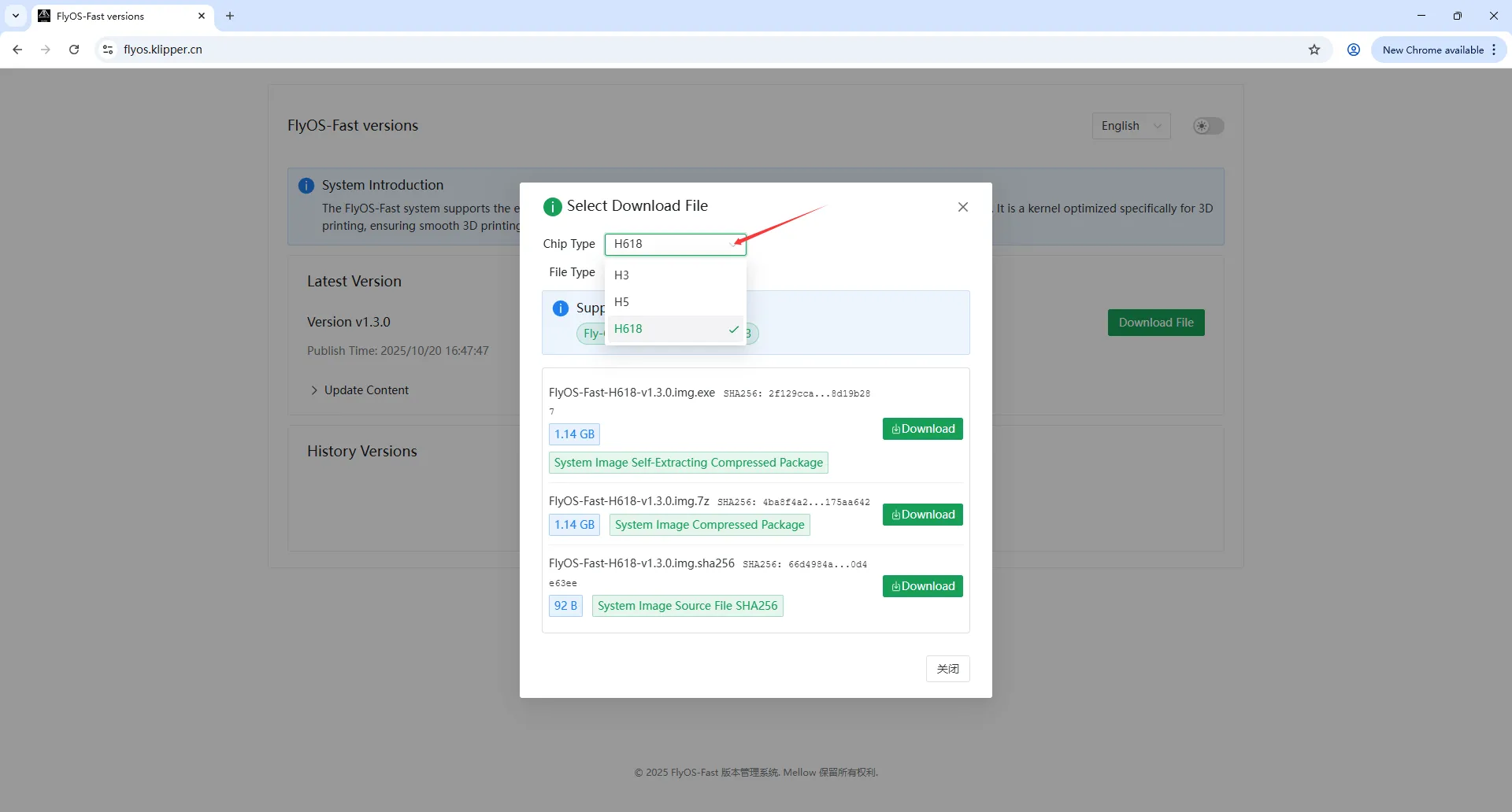 - 请注意你需要在FlyOS-FAST-V1.2.48 这个文件夹中下载 FLY-H3 镜像