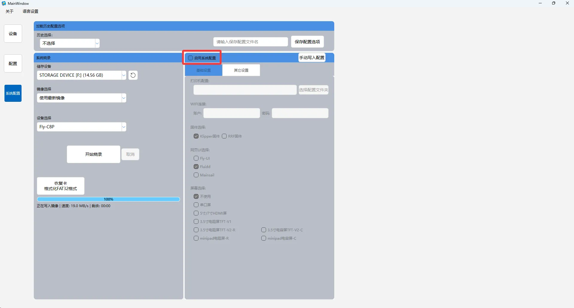 ✅ 操作案内: すべての設定項目の選択および変更を終了した後は、必ず手動で設定を書き込みボタンをクリックして、すべての設定をシステムカードに正しく保存してください。