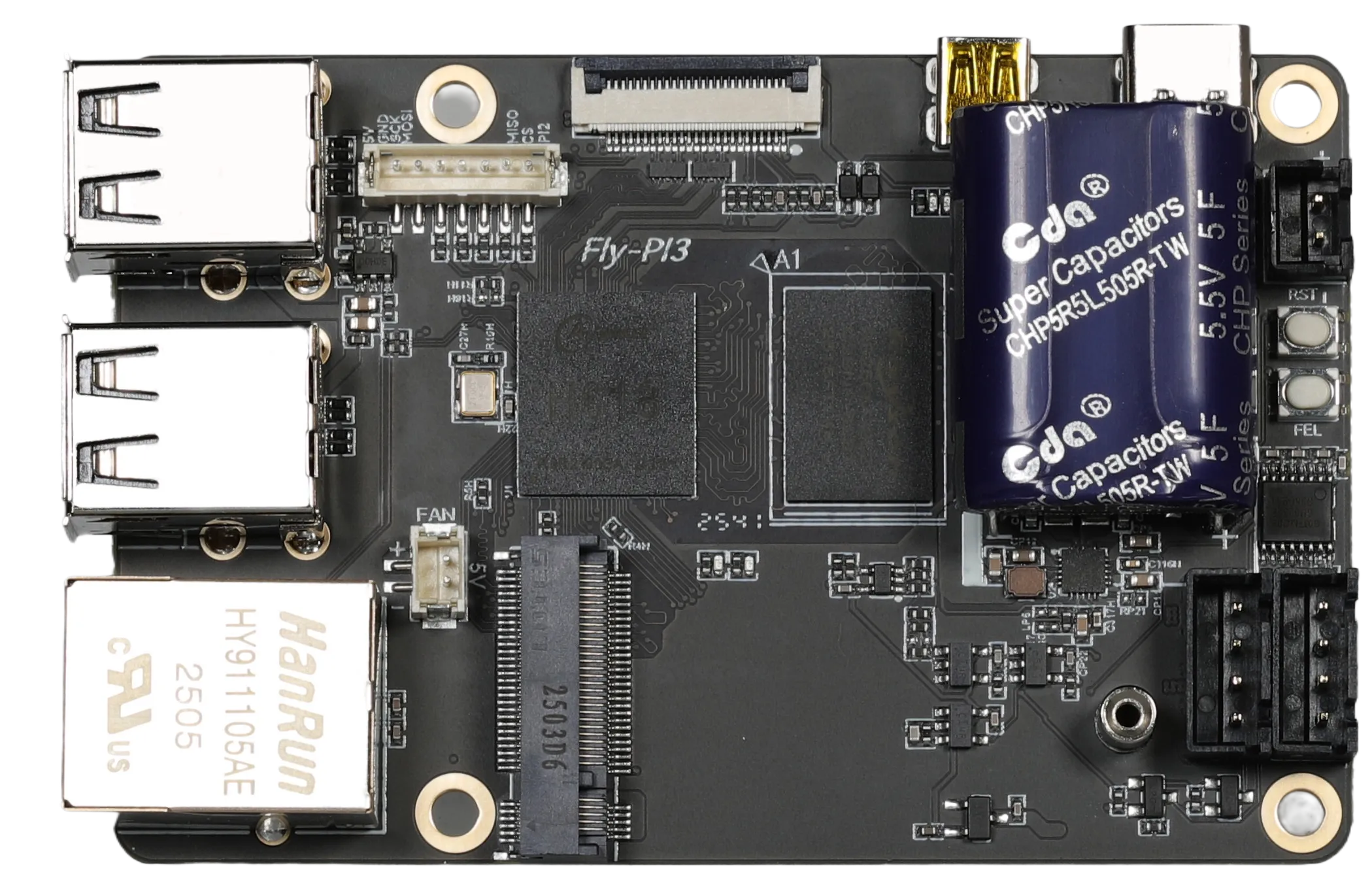 • 板载 M2WE 扩展接口: 用于连接官方 FLY M2WE 模块(Wi-Fi / eMMC)。