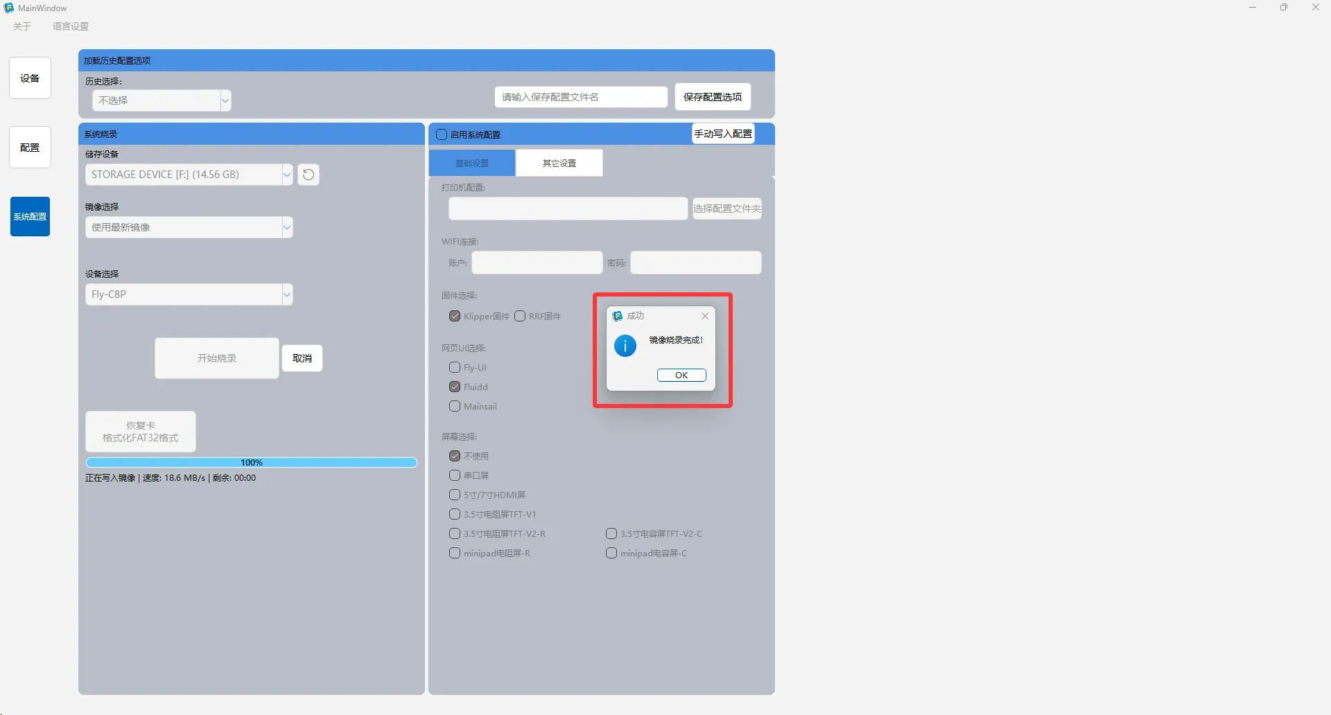 플래싱 진행 상황이 완료될 때까지 기다리고, 인터페이스에 "완료"라는 메시지가 표시되면 시스템 이미지가 성공적으로 기록된 것입니다.